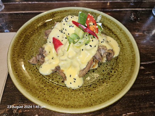 We enjoyed the food but unfortunately we had a stressful and uncomfortable experience due to the heavy-handed approach from staff to enforcing very strict rules on dog behaviour. There was a list of rules on the door which specified 'no barking, no whining'. We have an anxious rescue dog so we take a very proactive approach to managing his behaviour and ensuring he is calm in public anyways. We always come prepared with a blanket for him to settle in a space out of the way and chew sticks and treats to keep him calm and occupied.