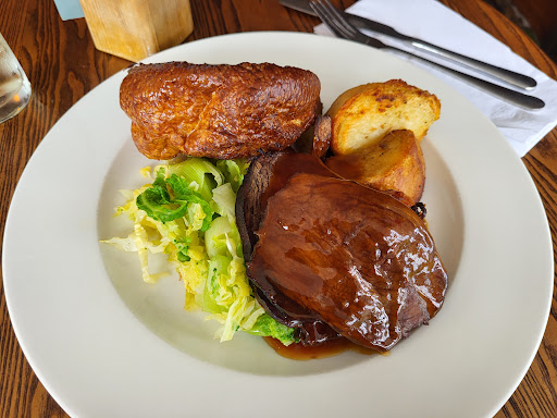 The table was two tables that rocked along the joint; there was no tablecloth. Cutlery was laid for starter & main but nothing for desert. Most of us had the beef, 30 day aged, it was sliced like tracing paper was full of fat and the knives were unable to cut it. The menu said roasted roots, vegetables of the season, roast potatoes and jugfulls of gravy. My wife and I were the last to be served, my wife did have a parsnip and a small slice of carrot with spoonfuls of cabbage two roast potatoes and a large Yorkshire pudding. Mine; well no roots at all but with the two roast potatoes cabbage & Yorkshire pudding oh and my two slices of fatty tracing paper they call 30 day aged beef,it was stone cold, no one bothered to check if all was good or not. Totally inedible.