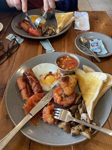 Read moreFirst and last time.. Very highly priced for what you get.. Poor quality food. Cold plates which equals food going cold the minute you put it on the plate. (food is suppose to be served at a correct temperature) our food was only luke warm. Sausage's were over cooked and dark brown, Atmosphere from counter staff was not really welcoming a smile wouldn't have gone a miss.. Salt and pepper condiments needed a wipe over as did the table. Dont know what people see in this place, must have money to burn and easily pleased. No drinks included in the breakfast price.. It's a no from me... ...