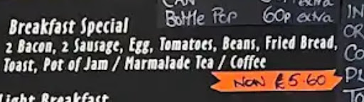 Read moreI really do believe in supporting local businesses, and I want to see this place continue to thrive. The staff are lovely and personable. That said, the food really was not great. The egg tasted of stale oil, the mushrooms were grim tinned variety, the breakfast tasted of nothing else other than the stale oil. The plate on which it was served was chipped. Also, there were more flags than at a UKIP conference, with a grim wrinkled magazine picture of the dead queen and Philip....