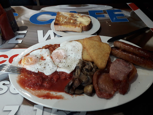 Well after many times trying to go for breakfast here , today i finaly made it. I met up with an old friend who treated me to the £8.99 full english brekki. After reading many rave reviews i was looking forward to it. On arrival we sat down and there was 4 more tables occupied with people already eating. My friend went to order our breakfast and came back with cutlery and a small mug of tea for me an a coffee for him. First thing i did was clean my knife n fork which had grease stains on the knife, not a good start. From there it was all down hill. The tea was warm not hot , then the breakfast came. Yes it was quick , only plus in all this. The sausage's were cooked just about 1 part coloured 2 parts pale , no taste to them and slightly warm. A small portion of tinned tomatoes, beans and a few fried mushrooms which were all just warm. 2 very small slices of thin tastless cold bacon , 2 cold tastless hash browns , 1 slice of cold fried bread, 2 hard over cooked fried eggs and 1 slice of cold toast. What a waste of money and so over priced for the worst breakfast i have ever tasted using cheap very low quality products. How anyone can rate this place as high as reviews suggest is beyond me, yes we are all entitled to our opinion and personal taste and this is a honest and accurate review. I would never go there again and would not recommend it to anyone. I only gave it 1 star so i could write a honest and accurate review. I would just like to add that my review is in no way bias or meant to cause offence, i believe in giving honest feed back, i would have done it face to face while there, but due to an appointment i had , there was no time. I hope you take this feedback on boared and in the contexts it...