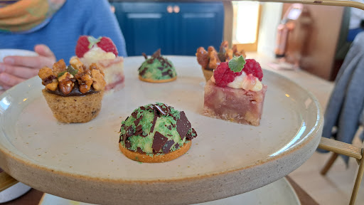 Read moreWe spontaneously came in for afternoon tea on a weekday, enticed by the brilliant and thoughtful vegetarian menu. Best veggie afternoon tea we both have had! Someone has really sat down and thought about crafting a good menu here rather than taking out the meat/fish options and slapping on a second cheese sandwich. The savouries were incredible (we scoured the Mount shops afterwards for the seaweed crackers, sadly unsuccessfully), 4 different vegetarian sandwiches, a lovely selection of sweets and two large scones each. Our favourites were the wild garlic, celeriac and sea weed crisp, the tartlet with pea and sea vegetables, the fennel pollen egg mayo and Davidstow cheddar + wild garlic sandwiches. The sour lemon and raspberry ripple chiffon was to die for 😍 We had two pots of tea for two as well, the second pot included free of charge; left full to bursting and...