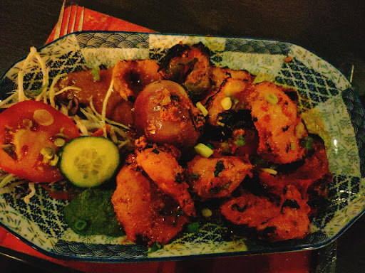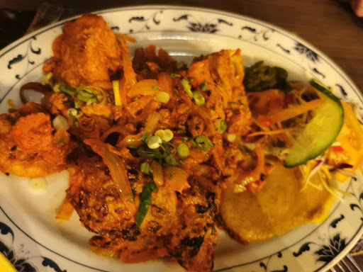 Long review: Came here with my girlfriend for dinner. She goes very regularly, and I had been a few times. I ordered the chicken shashlik, and she ordered the chicken korma. Between the two of us we also got pilau rice, lamb momos, and garlic naan bread