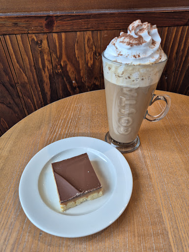 Read morePopped in for a Maple Hazelnut latte and a millionaires shortbread around lunchtime. There was only one person in front of me at the till. Got served quickly and got told my drink would follow shortly. There was one lady doing drinks, but all the other staff were just standing around or talking on their headsets. Unfortunately for me the guy in front odered 4 drinks. In addition they had run out of maple hazelnut sprinkles for my drink, but I choose to have chocolate sprinkles instead. The restaurant was untidy, and the tables needed to be cleared. I had to move a tray before I could find somewhere to sit. This is the worst Costa in Stafford. Except for the lady making drinks, no one cares, and customer service is...