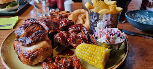 Read moreThis was my first time to visit Harvester Poachers Cottage since after the pandemic. I would say it's definitely improved from what I remember in terms of food, menu and decor. I had an ultimate combo and that was plenty enough. It was hot (temp) and all the meat cooked to perfection. Plenty of chips as well, the corn on cob was a bit like tiny and flavourless but I'm being picky now. Of course I had salad which was unlimited if you order a main meal. I always enjoy the salad section and I've noticed they have a coronation coleslaw which might not have been new but i don't remember that before. Because it's been awhile since I've been here, I forgot that yeah the soda was unlimited but you help yourself. That bit wasn't mentioned but not really a big thing. Food were great and portions were big especially the ultimate combo. I decided I couldn't face any pudding afterwards. The service was quick enough. Wiktoria got all our orders right and came back to check on us. And she dealt well with my Bluelight discount too so thank you. I don't think I've seen disposable little wipes for sticky fingers especially after having had ribs and chicken wings. Maybe I should've asked.