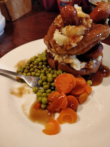 The "cheddar"mash tasted exactly like smash The peas and carrots were 100% from a can (you can tell by the colour and softness) The sausages tasted like walls or richmond The gravy was watery and tasted generic The yorkshires were blatantly frozen and re heated as were the exact same size as eachother.