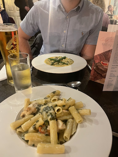 we had our food order and drink order taken quickly, which was the only good service we were given. our drinks arrived, then our garlic bread pizza to share. our drinks then sat empty for 60 minutes before we had another, and we only had another because we had to ask, which was difficult as there were so many staff but avoided any chance to interact with us.