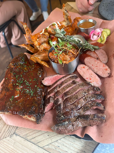 Read moreFirst time coming here tonight. We was under the impression that the restaurant was opposite mojos when we’ve previously drove past it, but rang the restaurant and found out it’s to the Right of mojos (if your facing mojos). The sign post outside Smoke & Rye can easily be missed it your not paying attention whilst driving. Smoke & Rye is split into a bar and restaurant upon entering. The bar has that wood fire smell inside and looks very cosy and rustic. Upon entering the restaurant which is a reasonable size, we was sat down on a table for two. The table itself is uneven so careful putting your drink down and careful you don’t knock it. The selection of food is good “, burgers & beers/cocktails - £15. Menu offers small to large plates of various meat & meat free dishes. I ordered a Bombay sapphire gin cocktail which I can’t remember the name of but it was LUSH and ever so moorish! For mains I ordered the Baby back ribs with apple salad & truffle fries. As you can see from the pic it’s massive, meat fell off the bone and I could quite easily have eaten it again. Selection of sauces are good, hot sauce isn’t to my standard of hot but each to their own. The burgers are massive as well and of decent proportion which I also recommend. Overheard customer on the table next to us and he had a egg allergy, the waitress had checked with the kitchen staff & supplier to see what products had egg in it which was nice of them but I’m sure if they stated on the menu what the products contain might make it easier. Also a nice gesture that for every £1 that is taken off the bill they plant a tree which is very good. Highly recommend and definitely will be...