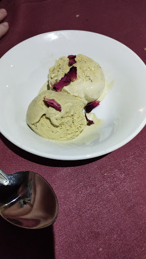 Felt like the restaurant attached to a hotel but now we have got the negatives out of the way everything else is positive. I loved the food. I found the variety good and it didn't feel like an Indian that gets everything by bulk in plastic. The meal was obviously made for me. Decorating the poppadom with tiny pieces of salad was quirky and pretty. It made the poppadom slightly soggy in places but balance that with the presentation. The food was wonderful. Tasty, fresh and prepared for me. Either they liked us or they always do that. More of a real Indian restaurant than most. I wish they did the same with the desserts, homemade Kulfi is worth driving 30 miles for. I'm glad I didn't...