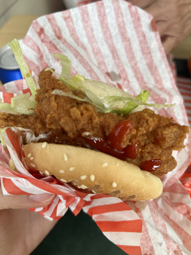 Strip burger meal was less than ok, but not absolutely terrible. Bun was very small and the chicken strip was tiny and not entirely fresh. The chicken pieces were ok, but again it wasnt fresh chicken, could defo taste the "raw chicken has sat in the fridge for a few...