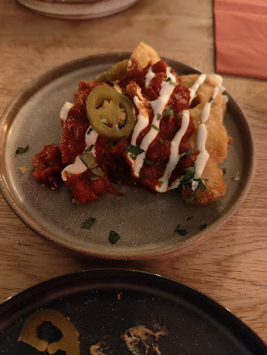 I would probably not revisit personally but I would still recommend others go try it. One experience on one day might not be typical and the food might be more to other's taste than mine. I had no problem with service as servers were friendly and speedy so I left a tip. Food and drinks came out fast. The food itself was very bland. The most flavoursome item turned out to be an inexpensive watermelon salad. I also had beef tacos (just pulled beef and chopped raw tomato) and a side of corn (dressed with crumbled soft cheese). I had to throw hot sauce all over those. There was just none of the zing and excitement and creativity that Mexican food should have. The biggest disappointment was my £9 cocktail. I don't have margaritas often but when I do I love it. What I got was warm, insipid and overly sweet. It actually crossed my mind that they might have given me something that had been left on the bar instead of a fresh drink. I did finish everything so have not left a really bad score. I think better understanding of flavour balance and a little more technique might improve both the food and the cocktails. I hope they do well tho as Stockport needs more...