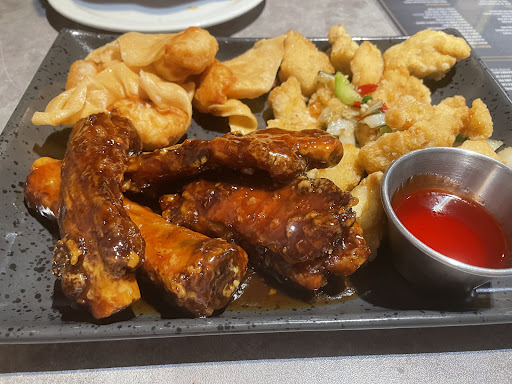 I tried the standard mixed and the salt n pepper mixed. The salt n pepper items was chicken pieces, chicken wings, spare ribs and something else haha. On the on spicy it includes ok sauce spare ribs, BBQ ribs in syrup or BBQ sauce, 2 types of spring roll, small veg ones and larger meat, wontons, prawn toast and more. See the pics haha.