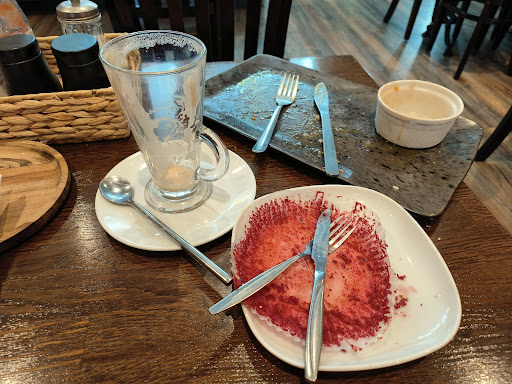 Read moreTasty hot food, great value, friendly and courteous customer service, all provided in a lovely peaceful environment. I've ordered from here a few times on Deliveroo and never been disappointed so thought I'd pop in this time. Ordered the mega breakfast (which is great value for money), a cappuccino and a big red velvet muffin. Only thought to write a review once I'd polished off the food, so only able to provide a photo of the aftermath on this occasion! Will definitely take a picture before I dig in next time...