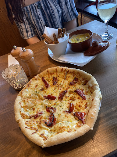 It is a beautiful restaurant with a nice range of superb quality food, with exceptional service. I highly recommend the Aubergine in Whey with the Garlic Bread with Cheese and Sun-dried tomatoes which we had as a starter, however itâs fairly filling so as a large lunch, you canât go wrong.