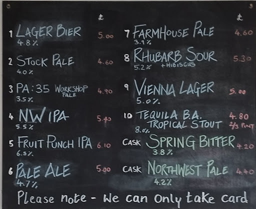 Read moreA great place to drink good beer. Just round the corner from the travelodge where I was staying. Decor is not fancy but that’s not what you are here for. I tried both beers on the pumps: a Czech style dark lager and a “farmhouse” pale ale. Both excellent in their own way and not overpowered by citrusy hops as is often the case nowadays. They have a good selection of other beers. The drinks menu also lists wines, though I didn’t see anyone drinking them! As regards food, just step in to the beer garden (it was too cold to drink there on February) where the pizza oven is, order one and it will be delivered to your table. If you are travelling to/ from or transiting via Manchester airport on a Thursday through Saturday , the travelodge/Runaway Brewery is a good combo. Bus 199 is a regular service which will take you to/from the...
