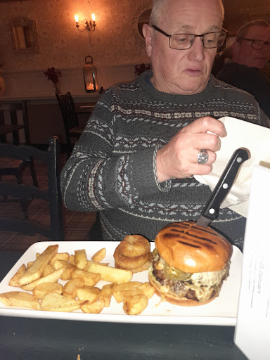We decided to go as we were in the area and I'd seen good reviews. Lovely old pub with history, very busy with people eating and drinking. I think we went on a bad night, only 2 staff were serving and both were also clearing plates and taking out food. They looked rushed off their feet and not very organised, our food arrived quicker than expected with it being so busy. We ordered the tri of fish cakes, partner said chips were lovely and were real but the fish cakes were dry, i did think that as i saw him cut into them, he said they tasted like they had been kept warm in something for to long. I had a smokie burger, and upgraded to sweet potato fries. The burger was very nice, the bacon was nice thick good quality i enjoyed it. I thought the fries looked burnt as my plate was put down but as I've only had them a couple of times before i wasn't sure and obviously thought they wouldn't send out over done fries. They were definitely over done, i could only eat a few, the thinnest ones were rock hard. Portion sizes were good. If it had just been one or the other that was overcooked we would of just thought it was a one off but for both meals to arrive with something overcooked not sure if they regularly server food like this. Our two meals averaged at over £10 each, so not expensive but not cheap either. It's a shame when you pick somewhere due to good reviews but feel let down when you go and don't have a good experience. We both work full time and enjoy going out to eat and finding good local places on a weekend but on this occasion the meals we received i wouldn't recommend to anyone...