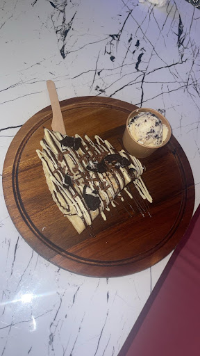 After waiting under 20 mins the Crêpe was served (see image). As with most dessert shops, the presentation was awe inspiring and absolutely beautiful and the ice cream was separated in a tub so it didn't melt next to the warm crêpe. A slight nitpick from me would be the fact the waffle wasn't served together. The actual taste of the Crêpe was a slight let down, the base of the Crêpe was soft and gorgeous but ruined by the huge chunky Oreos which had a stale texture due to being heated. I'd advise to make the Oreos slightly less chunky. The crepe was a 3/5