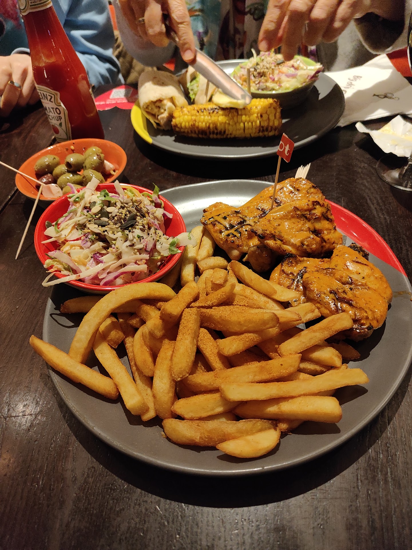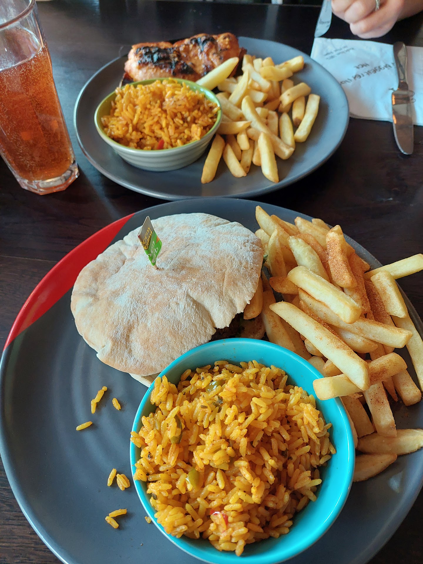 Ordered food - I had the halloumi pita with Peri chips and spicy rice, my partner had the butterfly chicken with chips and spicy rice. I enjoyed my meal however my partners chicken was extremely dry to the point he was struggling to chew it.