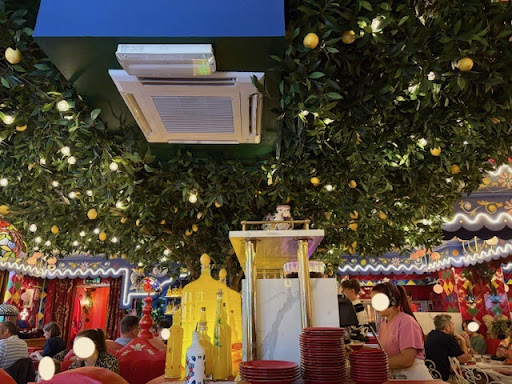 What greeted us upstairs was mind-blowing. Bright decor, dominated by swathes of red and mirrors on the ceiling. You cannot help but giggle at the comical absurdity of it all, it works so well! Also, happy people enjoying delicious food with friends and family.