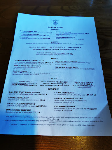 We went here today , arrived around 1:30 pm and was told there were no tables available inside however I could see there were clearly empty tables. I asked the waitress if she could check again and was then told we were in luck as there had been a “no show” We were seated quickly and our drinks order taken and another lady came and took our food order , I ordered prawn starter and beef roast , my partner mushrooms and fish and chips . Starters came promptly , however no drinks had come ? I asked the lad who bought our starter to chase our drinks , my tea arrived , but I had to call him back for milk , and then for a spoon and sugar , he told me they were under new management ( not quite sure the relevance of this ?? ) and things were a bit upside down . My biggest gripe was the fact the door was constantly opening and closing to the garden , the room was cold , and the draught was constantly blowing through , the four surrounding tables were all eating in coats , with one ladies husband fetching a blanket to put over her legs x As a consequence the food although coming out hot became cold pretty quickly . My starter was tasty although very small , 5 small prawns for £8 . The mushrooms were extremely tasty and came with sour dough bread. Beef was excellent and the roast was piping hot but as I say was cold within minutes due to the door, the fish was meaty and tasty but the batter was very very hard . Side of cauliflower cheese at £5 a complete waste of money as it was burnt . We waited to be checked on but we weren’t , so we couldn’t order another drink or a dessert . After 10/15 mins of finishing we made our way to the till to pay . This was our first visit and wouldn’t necessarily be our last but service needs tweaking and maybe only a place to visit when warm And sunny so the chill factor wouldn’t...
