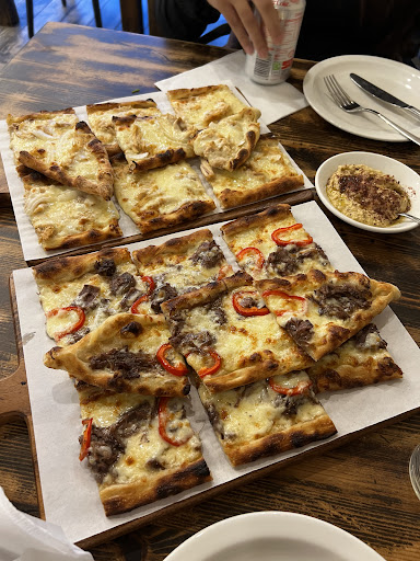 The hype was definitely worth it my friend had the garlic sausage and mushroom which made me very jealous I had a slow cooked beef pizza which was insanely good my only complaint I should have ordered two however this is just because I'm greedy the portion size is just right with nice dips and fresh salads for side orders you can take your own alcohol and the Turkish coffee is a really nice way to finish off although I would warn you.... if you've never had Turkish coffee before don't drink it all the way to the bottom 🤣