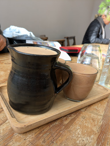 Read moreWe enjoyed a 75%er with Lions Mane and it was lush. Two glasses full of the chocolate stuff plus a jugful with a two glass top up plus a bottle of tap water to cleanse the palate. Having known about Jaque on his chocolate journey, this is a masterstroke to promote and embed his own handmade chocolate brand in Stroud and the wider world - well done!The young girl who served us was friendly and knowledgeable. Overall a...