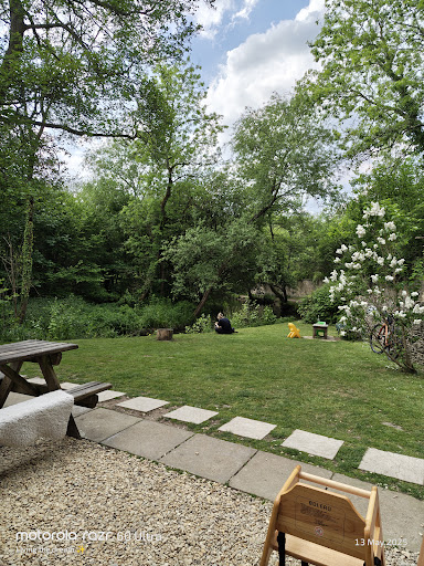 The river Frome runs by the outside lawned area where there's also outdoor seating with a mixture of benches and tables with chairs. Very clean and relaxed.