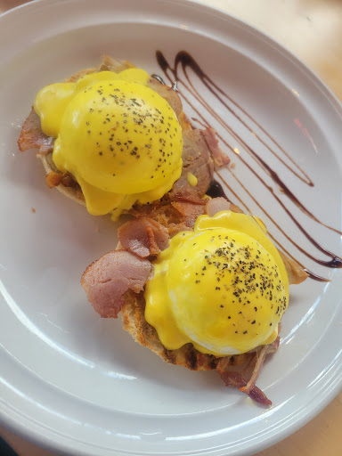 Loved the coffee. My partner had an all-day breakfast, which he liked. The disappointment came with my meal. I ordered the eggs Benedict. I always order the eggs Benedict on a menu because I LOVE a good eggs Benny! Unfortunately, I have to say it was the worst I've had. The eggs were hard boiled, the ham was very dry, and the hollandaise sauce was starting to crust. I can only assume it sat under a warmer for more than 30 min before I even ordered it. I would have rather waited a few more min for...