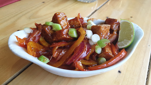 In my opinion, it is one of best quality vegan food I have tasted. In my first visit, I had mexican nachos with beans which was bursting with flavours. The second meal I had was sweet and sour tofu for starters and cripsy corn cakes with tofu, both of which tasted delicious. My visit couldn't go without a dessert so the 1st time round I ordered a uniquely tasting caramelised plantain with peanut and walnut brittle and icecream. The 2nd time i went for chocolate delight which was indeed delightful with quite a unique concept! Both of these were to die for!