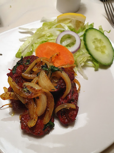 A rather disappointing meal. I have eaten here many times in the past but felt the standards had fallen this time. The greeting was warm and friendly as always. The service was swift as we were the only people in the restaurant....a little too quick to clear away plates after our starter as 2 of our group were still eating so had to hold onto their plates. I'm not sure if it is a cultural thing but one of the staff could be heard snorting every 5 minutes or so throughout the meal. To hear someone snorting up through his nose every few minutes was awful...had it not been a birthday meal we would have left as it is a disgusting sound to hear throughout a meal!! The food was mixed. The vegetable biryani was flavoursome but the vegetable dhansak was lacking in any flavour other than heat!! We brought this to the attention of the staff who said they would bring another out in a few minutes. In 3-4 minutes another came tasting exactly the same. It is impossible to cook a fresh one in 3 minutes so it looks like we were given more of the same. It was left uneaten as it was tasteless...sadly we had to pay for it. The naan bread was tasty but swimming in oil...the oil sat in a pool in the middle of the bread. We hoped pudding might save the meal but we were brought one dessert menu and told that they only had 3 things on the menu..... no kulfi icecream which we had hoped for....we paid and left. Such a disappointing but expensive meal, sadly after many years of going here we will not be returning. The food wasn't great but the constant snorting from one member of staff made...