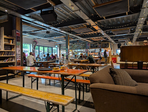 I recently visited this canal-side venue thatās perfect for a drink and a bite to eat. The place feels spacious and has a fantastic atmosphere with a modern vibe. The DJ was playing upbeat music, which added to the lively ambiance. After enjoying a pint of cider, I discovered a roller disco upstairsāa complete and delightful surprise! If I hadnāt brought my dog (did I mention theyāre dog-friendly?), I would have definitely joined in the fun!