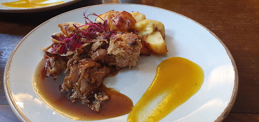 Dinner I honestly have never had a better veggie dinner that the one I had last night. I ordered the filo sweet potato parcel that came with salad and couscous. Portion sizes were more than adequate, and flavour was AMAZING. My other family members has squid and pork belly starters, then mains were the burger, ribeye steak, lamb, and chicken skewers. None of us have can pick any fault at all. Even the side salad was flavoursome and beautifully presented. The menu did state āitās not fast food itās made to orderā, and we did wait a bit for the food, but it was A MILLION TIMES WORTH IT! I wish we took photos for this reviews, but to be honest it looked and smelt so yum, none of us could wait for a pic. There were also two young ladies working their first shift the evening we were here and they were both lovely. Pulled pints perfectly, helped with waiting on us for dinner, and everything was great.