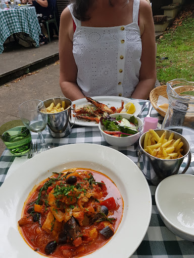 Read moreWe were in Nailsworth for a couple of days chilling.Noticed this fish restaurant in central Nailsworth and found that they are open from lunchtime till teatime Monday to Thursday and also open at night Friday and Saturday. Went for a light lunch bite on Tuesday as had already booked an Italian meal for the evening. Very friendly greeting by staff and we were offered an outside table, which was a bonus considering the hot weather. Good choice of fish and seafood first courses. I won't give you menu choices as they change a lot of it daily. I had the William's soup ( which is a menu staple and my wife had a King Scallop. Both were excellent. ( The William's soup is probably the best fish soup I can remember eating )Very reasonable price including wine and beer. Enjoyed it so much we decided to return the next day for a full lunch. Outside table again and very friendly professional waiting staff. We both went for Spicy Crab soup first course. My wife had halibut main and I had Catalan fish stew. Both meals were superb. We had a chat with waitress and she told us that they get most of their fish and seafood fresh daily, delivered from various parts of the country. What a gem of a restaurant. So unusual to get such a great independent seafood restaurant in the heart of England, so far from the coast. We cannot recommend this restaurant highly enough for food, staff, atmosphere and...
