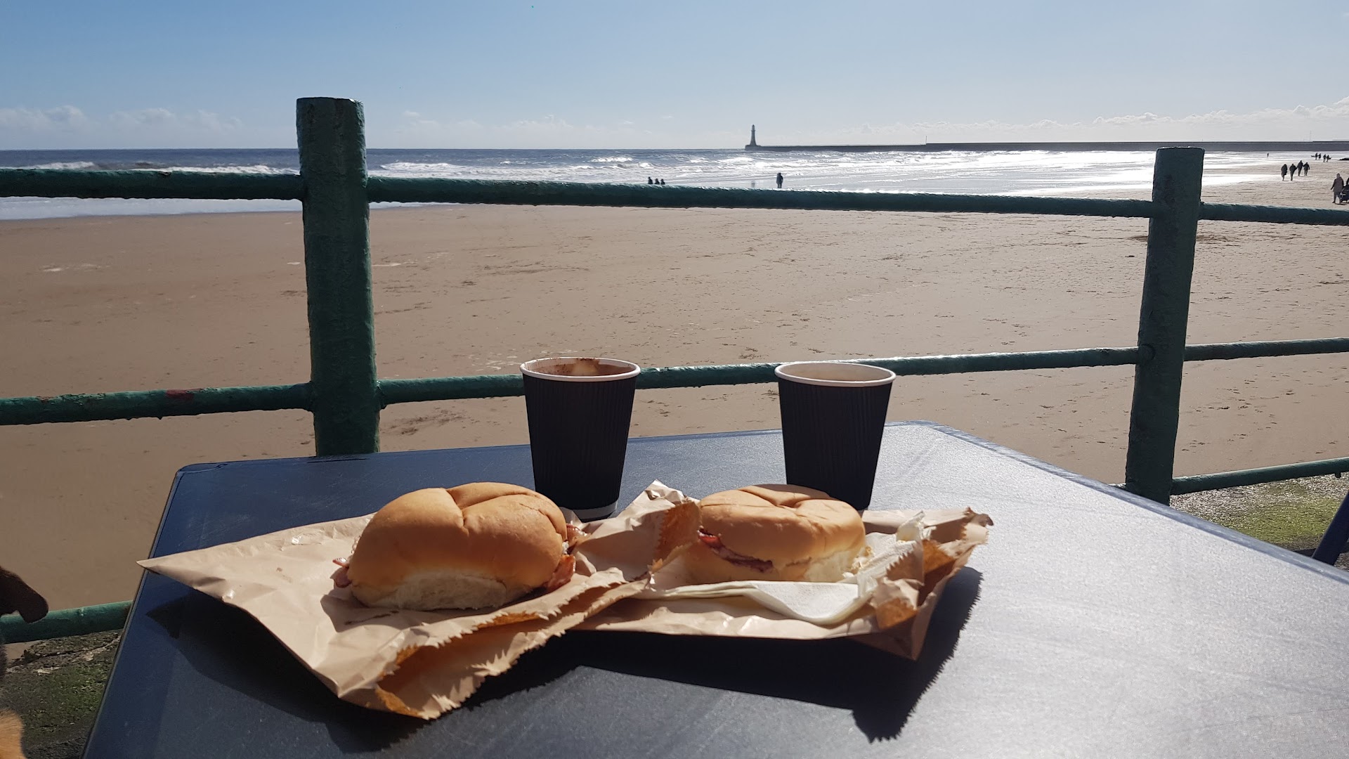 Positively the best place to catch the early morning sunshine. There's some lovely tables right on the promenade and you can look out across to the lighthouse. I love nothing more than a Nice cheap, no frills bacon butty and a coffee in the sunshine, any time if the year . Although just lately it's not the friendliest service with the new owners.