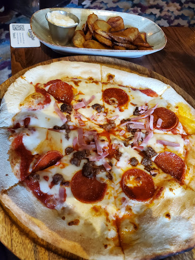Read moreWhat a waste. Our first time visiting this restaurant. We walked in and asked do we sit anywhere, they said yes. We found a table and sat down down. On the table is the table number with a QR code to order, it doesn't work. We waited and waited and no one stopped at our table. By the bar, we saw a sign that said order here. We walked up and asked is this where we order our food if seated in the dining room, they said yes. We ordered the pizza special with potato skins and a soda. We received our food and it were disappointed. The Margherita pizza wasn't good at all. The cheese was chewy, the red sauce had no flavor and the crust wasn't cooked throughly. The soda was mostly carbonated water. Save yourself some aggravation and go to the carvery place across the street, better food at...