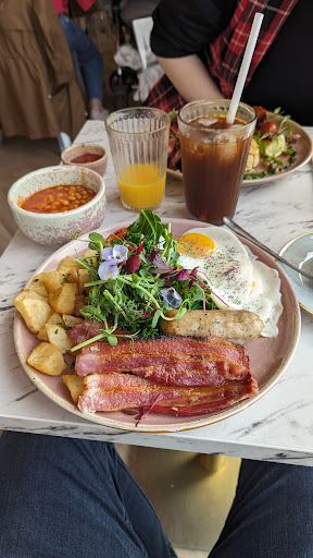 Cons: The sun was in my friends eyes with no blinds / space to move / alternative solutions, drinks lacked flavour, iced latte was messy (it was dripping when it arrived and I used my napkin to place it on as there was no coaster /saucer for it), hot chocolate lacked some flavour (according to my friend, however she got a cinnamon flavoured drink and I hate cinnamon and could definitely taste it she said it was weak the rest of the drink and I only tried the last sip so drinks may benefit from being stirred frequently), the latte had a subtle flavour of kinder Bueno at first but was overpowered by the flavour of the espresso -preference depending some people may prefer this, the pancakes were fine- you pay for the looks and the toppings which reflect the inflated price, our table was the only one that wasn't fully prepped (this is nitpicky I'm sure) as we didn't have the sign telling us a maximum time of 1hour at busy times / how to leave a review and the salt and pepper hadn't been refreshed and was near empty for the first seating.