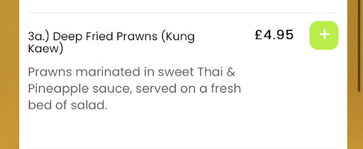 Read moreBest part about it was the delivery driver. He was plesant and friendly. Im afraid the complements stop there. We eat thai food regularly and thought we would give takeaway a go. First and last time. The food was warm, but not hot by any stretch, the satay chicken starter looked like scrawny chunks of green gristle on cocktail sticks. Tiny portion. The prawns in my prawn toast were rubbery and the tom yum soup was filled out with mushrooms and not much more with a nice layer of oil on top.. The thai green was ok. Small portions, inadiquate, sub par food and cold. £40 in the bin as we couldn't bring...