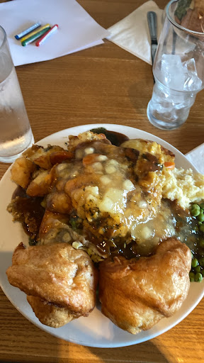 My meatless carvery was ok, the cauliflower was watery and there weren't any veggie roast potatoes available. My daughter had some turkey and said that was nice.