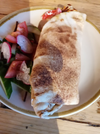 From the outside you see a wooden house. That immediately changes when you walk in. Floor to wall is wood, beautifully treated decorated with art work by local artists. The tables are all individually hand painted the seat are comfortable The lighting gives you a warm cosy feeling. On the counter and protected by glass are a selection of stunning cakes and fine pastries sitting on slate tiles, which just adds class. accommodating every bodies dietary requirements. The menu is tastefully written its clear, the quantity and quality of food is of a very high standard. Excellent value for money. Every need is catered for, their hot/ cold drinks and a tipple for the adults . Proof of id must be available. For children there is a selection of books, to occupie them in wet weather. All takeaway items are biodegradable. Even when very busy the staff great you with a smile and hello they are aware of any allergies and if not are able to locate the correct information and find out. They keep a good good eye contact and you don't feel under pressure. The staff make a lovely coffees and there is a selection of different milks. The table service was very impressive I went at a busy time, yet the staff new where to work what needed to be done. The standard of cleaning was also very high. This is a must have visit all year round. Our beloved four legged friends are also very welcome with a selection of biscuits and plentiful supply of fresh water. If sitting in side is not for you there is ample...