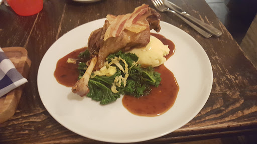 Beautifully presented with a variety of antiques and other interesting items, cosy, atmospheric and lovely and clean. Found this one as a last minute stop off for dinner on the way out of London, on a weekday evening. Booked a table online on their website for an hour later. No problem being seated early as it didn't take as long as expected to get out of London. We had a very cosy nook with sofa and a cabinet of port separating us from our neighbours. Very friendly and attentive staff, short wait for food. The food was spot on, I had the duck, which fell off the bone the moment the fork touched it (how they got it onto the plate in one piece I don't know!) Perfectly done. Hubby had a very tasty burger and couldn't get over how good the fries were - super crispy and delicious. We have two small children and they were made very welcome, although I wasn't aware there were high chairs available until we had finished. (We didn't ask to be fair - youngest was tired and on our laps most of the time anyway) Children's menu was available though I didn't see it on the website. Only one negative and that was despite very reasonable prices for most items, (£16 for the duck) I think £4.50 per child for only one scoop of ice cream (high quality as it was) was a little excessive! They enjoyed it though. Will definitely return. Highly...