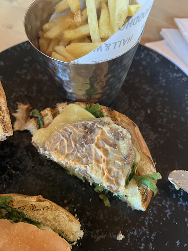 A lovely building inside and out but unfortunately you are not made to feel very welcome and the food is disappointing for the price. We had a charcuterie sharing starter which consisted of 2 slices of bread some mixed sliced cured meats, onion marmalade (which is weird to have with just meat) and some wilted dead leaves, its almost like they went to Sainsbury’s and bought a mixed sliced meat pack and chucked that on the plate and thought that’ll be good enough, it was nothing special. My main was a southern fried chicken burger, which is literally a frozen Birds Eye southern fried chicken fillet in a burger, which made me laugh especially because of the price. I have added a picture so you can see how poor it was, barely filled half the bun. The chips I was served where refried, over cooked thin chips that were greasy and not very pleasant. I would have told the staff it was terrible if they came and checked back but they didn’t. One was on her phone behind the bar another was walking around not paying any attention to us and the manager was more worried about polishing this one particular part of the bar. He did share a few glances our way but that was about it, I didn’t see him again after that, I guess he probably found something else to polish as he seemed more worried about someone coming in the next day and making the place look clean. Which in all fairness to him it did look pretty darn clean.