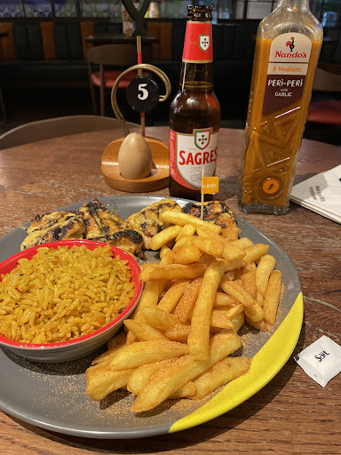 Read moreVisited with my family as a treat for the kids during exam time. Tried Denton as the Ashton branch was closed for refurbishment when we tried to go during half-term. We were positioned at Table 13. There is a row of spotlights above, 2 of which shine directly down & are very bright. Because it was so bright, this area of the restaurant looked a bit tatty & not as inviting as the other side of the restaurant which seemed to look cosier. Ordered through the app & it was 30 minutes between finalising the order to the food arriving which seemed excessive compared to other Nandos we've visited. What ruined the whole visit was the fact we were sat next to a family with a young child who was watching cartoons/films on a mobile phone at FULL VOLUME presumably so he could hear it over the Nandos music playing in the restaurant. It was. It was like he had a TV on the table. I mentioned it to a staff member who in turn relayed it to the manager. Nothing could be done so I suppose it was just our misfortune to be sat next to one of those families who go out for family meals, but all sit using mobile devices & don't actually interact with one another. On the plus side, parking is plentiful, staff were polite & courteous & the food was good,...
