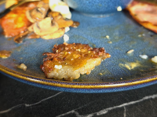 The homemade hash browns were hugely disappointing lumps of grease. Toast was very lightly toasted. Everything else otherwise seemed to a really high standard.