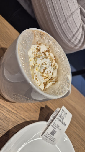 Well went in here as I had a gift card for a few pounds (it was actually my wife's but that is a different story). Great service greated with a lady who said she would not be a minute as serving at the drive through (spelt correctly) just as another young lady came out of the back put down the things she was carrying and asked if she could help. I ordered a coffee and treated myself to a cinnamon roll. When I had paid with the gift card I asked how I top it up or how I spend the remainder. The young lady who served me called over her colleague who gave me a very detailed explanantion and also told me about the app and its benefits which I will be downloading as I have the other app which I find of benefit. The coffee was superb and the roll although expensive is one of the best most moist I have every had (and I have had a few take my word for it). I decided to eat in and the atmosphere was the usual business types as well as the ladies and gents having a good chin wag. All in all a very pleasant experience only issue is that I see visits to coffee shops as a bit of a treat (beinga tea drinker) but with this one being round the corner from work I can see me visiting more often. I think the young lady who served me was called Ion ?? Apologises if I have this wrong but keep up the great work and serving the...