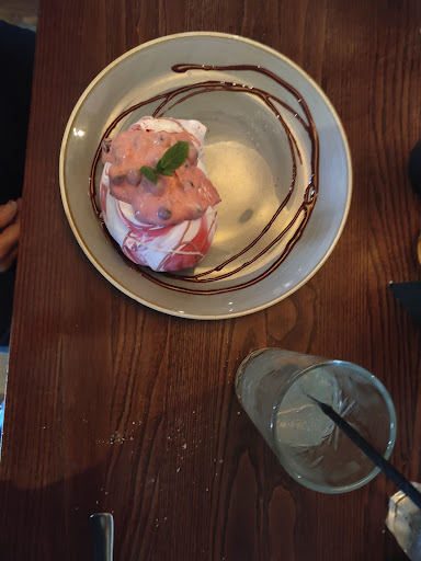 Secondly the fixed lunch menu does not accomodate vegans. So we tried to switch a starter of tempura mushrooms to something from vegan menu and were told that we could not as it would not apply the discount in the POS system. So we tried to switch to equivalent priced mushroom dish and the bar guy had to go and ask the kitchen. Which they agreed to do. The mushrooms were delicious by the way. Thirdly We had ordered 2 starters for me and my partner and a main and dessert for my daughter. Whilst we were eating our starters and my daughter had her pizza the waitress brought my daughters dessert out!!! After we finished our main I had to go back to the bar and ask for the dessert. When I told the barmaid what had happened she literally put her head in her hands and apologised and sorted the issue immediately.