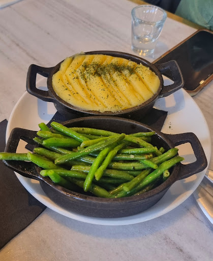 Read moreOur first visit to the Cattle & Cocktail for a date night. We were met by the manager as we entered who showed us to our table. He was very welcoming and hospitable. Our waitress was over to us within a couple of minutes to take our drinks orders and we also ordered olives and halloumi bites with chili jam as an appertizer. When they were brought to us we ordered scallops and king prawns for starters and for the mains salmon and the large rib eye steak. The scallops and prawns were very tasty and well presented on the plates. The salmon was presented on a bed of mash potato served with fine green beans. The rib eye was a bit over done for me. I asked for medium rare and it came a touch over cooked. However the steak was well seasoned and a good size. The only other issue with the steak is that I had to order chips as a side to have with it. At £36 for a steak I would expect chips to come with it. I have had better steaks for less money when eating out. Looking at the red wine list, there are only certain wines that you can have a glass of. I wanted a glass of Argentinian Malbec but it was only served as a bottle. The total bill was just over £155 for 2 people with 3 cocktails and 2 Peronis so although this is a nice restaurant with lovely staff it is overpriced and expensive.
