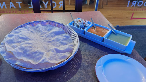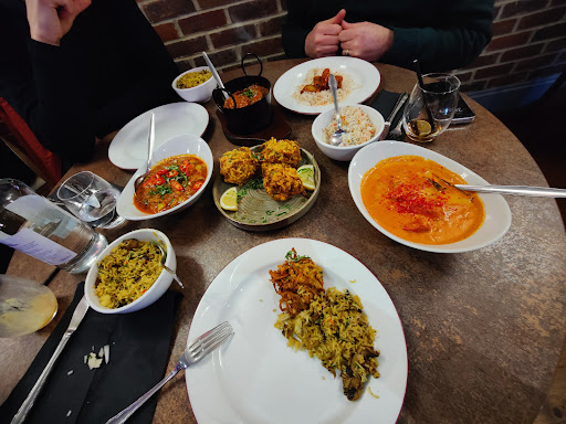 Read moreGreat little local restaurant with lovely atmosphere. 3 of us dined and started with some drinks and poppadoms. They came swiftly and the restaurant wasn't too busy which meant it was pleasant to chat and relax. We eventually ordered mains, I must admit we were waiting for some time and asked to order. I think you have to finish your poppadoms before you can order mains because we weren't allowed to keep them while we waited for our mains. Now the restaurant wasn't busy as I mentioned but for some reason our drinks and mains took ages, and even then we didn't get our naans for another 10 mins or so.....we had finished our mains when we asked about our drinks, eventually they came (just a bottle of coke and a lemonade) but couldn't help thinking we were waiting a lot. Food was not bad. They didn't mind that I ordered tandoori chicken with my curry and we're happy to offer some rice suggestions (mushroom rice). Personally one portion of rice could easily be shared between two. The bhajis were good and the naans fluffy. I ordered butter chicken, which varies a lot from place to place and it was flavoursome and not spicy, which I like. My friend had a vegetable curry and I think it was a balti....both enjoyed their meal very much. One friend often visits here and has had much more experience than my one time visit and he loves the place!! It was reasonably priced for the three of us at around £40 (no booze) a head but honestly I'd expect all round better service for that price. Oh by the way if you are driving there's a car park just a bit further up the road that's free in the evening and less than a min walk away.
