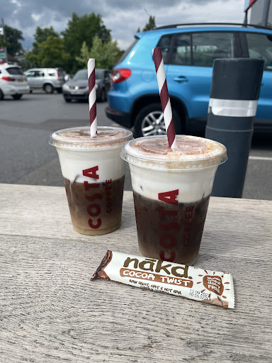 Read moreMy husband and I regularly visit this coffee shop, often 2 or 3 times a week and we always receive a warm and friendly welcome. Nothing is too much trouble for the staff and we have never been disappointed with the products we have purchased. I require a gluten free diet and there's even a selection of cakes for me, not always available in other coffee shops. However of late we have been a little disappointed to find the shop has had to close at 1800 hrs, we both work until at least 1700 and by the time we get to the shop we either have very little time to enjoy our drinks or worse than that we are too late and they are closing. We understand that this is due to staffing issues. We see the same faces enjoying the Costa experience each time we go and know that through the day it's often difficult to find a seat which indicates that it must be a popular store. Please Costa...