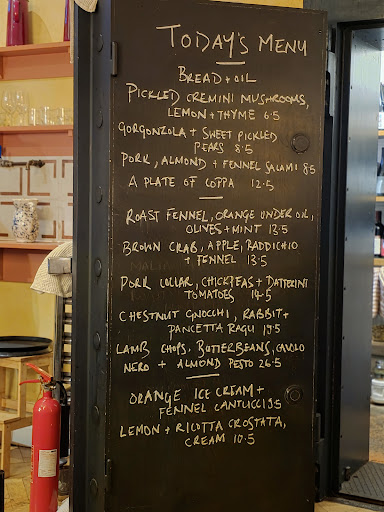 It's a small venue with around 20 covers, open kitchen and relaxed decor. The food is freshly prepared before your eyes from a menu that changes regularly and includes dishes such as "offal of the day"... much better than it may sound. It's Italian so there are always a couple of pasta options and an imaginative selection of meat and fish from a seasonal menu that isn't overly long - always a good sign. The idea is that you order a number of sharing platters. Quality of food and ingredients is very high and flavour matching is superb. The chef on the night we visited trained at Adode and Gidleigh under Mr Caines, so you know that you're in for a good experience. There should be a little more choice for vegetarians and pescatarians.