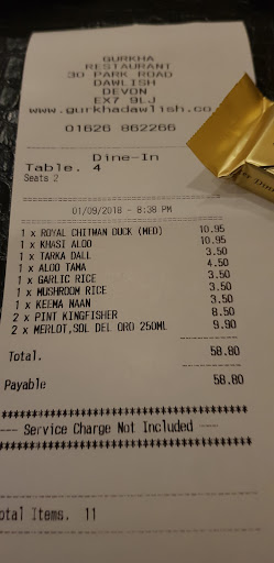 We drove over 30 minutes to try the food at Gurkha based on positive reviews. I wish we really had not bothered and this was the worst meal and service we have ever had and would give it zero if there was an option to. As we confirmed about gluten free options at the time of booking so we expected a good selection. I believe it was the owner that took our order and his son was behind the bar. I asked why the popadoms were not showing as gluten free as they are made out of gram or corn flour and he said that he didn't know which was a concern because he made out that he didn't understand. However he was fluent in english and confidently said the chips were gluten free but a minute ago he didn't understand what Gluten Free Was ?? So we decided to just order a main course each. Over 30 minutes passed and no food but a table of 5 that arrived way after us were getting their food. My husband asked how much longer our food was going to be and was told the larger table was being served before us. He again played a select understanding game. Another 10 minutes passes and the table of 3 next to us were served with starters. My husband approached again and was told it was only starters !! So we told them that we need to leave and was going to pay for our drinks and leave. We finally received our food an hour and half after ordering with no apology and it was awful. I am indian myself so I know what a good or bad curry is. They were both very bland and had no salt or spices in them. My husband approached the owners son to pay and there was not a single apology from him or his dad all evening. His dad approached to clear our table & he didn't ask me why both curries were hardly touched or did we not want to take it home with us. It would have been nice to be asked so we could explain why discreetly without causing a scene. There was nothing humble or honest about the owner as we listened to him being rude and aggressive to another table of 2 blaming them for an error in their order with no apology. I strongly advise people to avoid this place at all costs and I don't believe any of the positive reviews are genuine and they are there to draw...